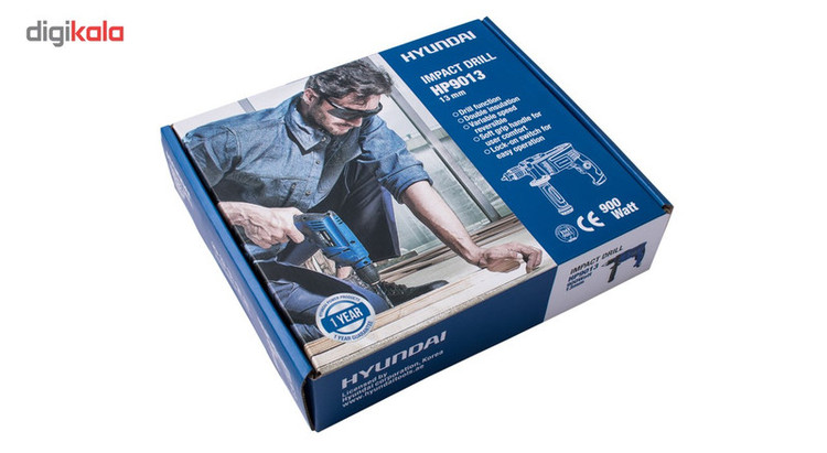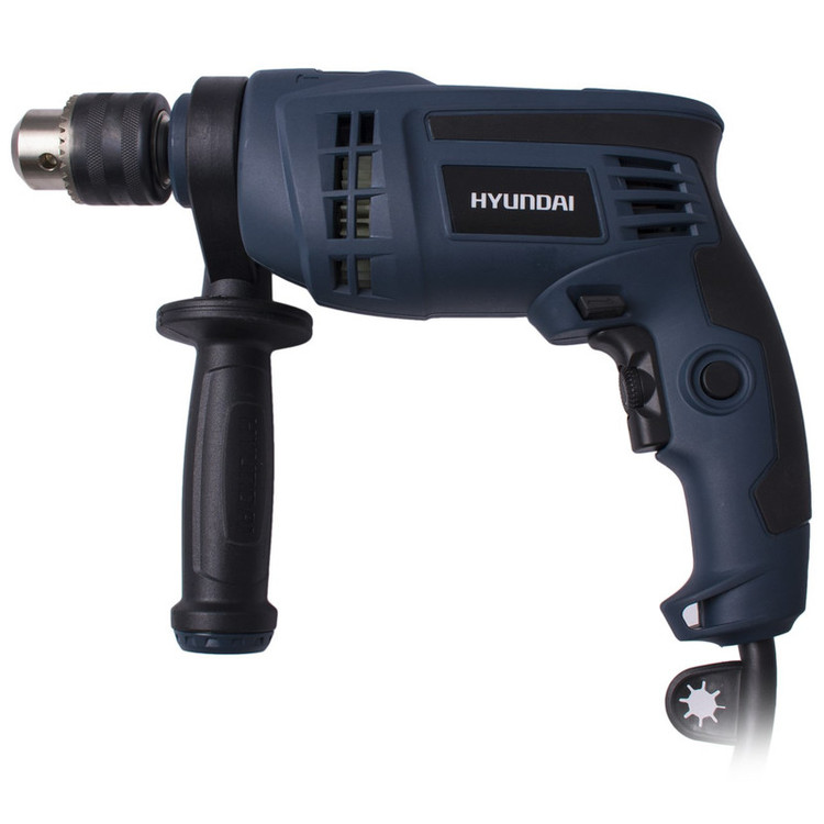 اگر قصد تهیهی یک دریل چکشی مناسب با قدرتی قابل قبول دارید، میتوانید از دستگاه فوق استفاده کنید. این دریل از توانی برابر 900 وات برخوردار است و از قابلیت کنترل سرعت گردش سود میبرد. میزان سرعت گردش این دستگاه توسط کلیدی چرخشی که روی شستی قرار دارد تنظیم میشود. بازهی سرعت چرخش این دستگاه 2800-0 دور بر دقیقه است. از دیگر مزایای این دستگاه میتوان به قابلیت چرخش ساعتگرد و پادساعتگرد آن اشاره کرد. سه نظام این دریل چکشی از نوع 13 میلیمتری آچارخور بوده و حداکثر قطر سوراخکاری آن در چوب، فلز و مصالح به ترتیب برابر 25، 10 و 13 میلیمتر است. با کمک این دستگاه میتوانید با دقت و تسلط بیشتری به کار خود بپردازید که این ویژگی به دلیل وجود دستهی کمکی و قفل سوییچ این دریل حاصل شده است. این دسته قابل تنظیم بوده و از قابلیت چرخش 360 درجه سود میبرد. دستگاه فوق با نام « HP9013 » شناخته میشود و یکی از تولیدات شرکت «هیوندای» (Hyundai) است.