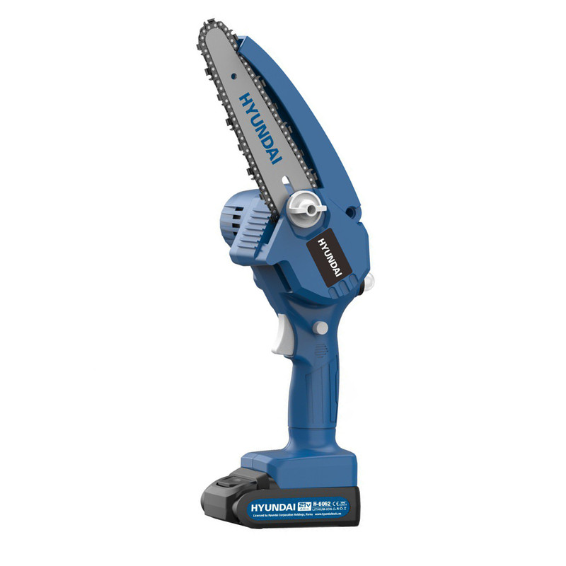 اره زنجیری شارژی هیوندای مدل H-6062 در سایز مینی ساخته شده است و همراه با دو عدد باطری 21 ولت لیتیوم با 2 آمپر ساعت عرضه میشود. اره زنجیری های مینی کاربرد بسیاری هم در صنعت و هم در مصارف خانگی دارند. این مدل از اره شارژی مینی هیوندای با داشتن قابلیت روان کاری خودکار زنجیر خیال کاربر را از جهت روانکاری مداوم راحت میکند. باتری ای که روی این دستگاه سوار شده است به کمک پایه شارژ با جریان 0.8 آمپر قابلیت شارژ سریع را دارد. از دیگر ویژگی های این دستگاه میتوان به موتور پر قدرت با توان 21 ولت که توان ایجاد سرعت آزاد 2850 دور در دقیقه را دارد اشاره کرد. طول تیغه مینی اره زنجیری هیوندای 15 سانتی متر (6 اینچ) است.