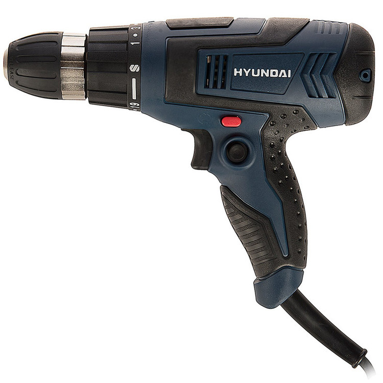 اگر قصد تهیهی ابزاری کارآمد برای سوراخکاری و باز و بسته کردن پیچهای مختلف را دارید، محصول فوق انتخابی مناسب خواهد بود. این دستگاه به شکلی مستقیم به برق شهری متصل میشود و نیازی به باتری ندارد. این دریل پیچگوشتی توانی برابر 230 وات داشته و نیاز شما به یک دریل و مجموعهای از چندین پیچگوشتی را پاسخ خواهد داد. سرعت گردش این دستگاه بین بازهی 700-0 دور بر دقیقه قرار دارد و کاربر قادر است با تغییر نیروی انگشت خود روی کلید دستگاه این سرعت را تنظیم کند. این دستگاه قابلیت گردش به سمت چپ و راست را داشته و میزان گشتاور آن در 19 حالت مختلف قابل تنظیم است. از دیگر مزایای این دستگاه میتوان به سهنظام خودکار آن اشاره کرد. این سهنظام از نوع 10 میلیمتری بوده و برای تعویض مته و سری پیچگوشتی، شما را از هرگونه آچاری بینیاز خواهد کرد. دستهی این محصول از خاصیت ضد لغزش برخوردار بوده و کمک زیادی به کاربر میکند. این محصول توسط شرکت «هیوندای» (Hyundai) تولید میشود و از کیفیت ساخت مناسبی برخوردار است.