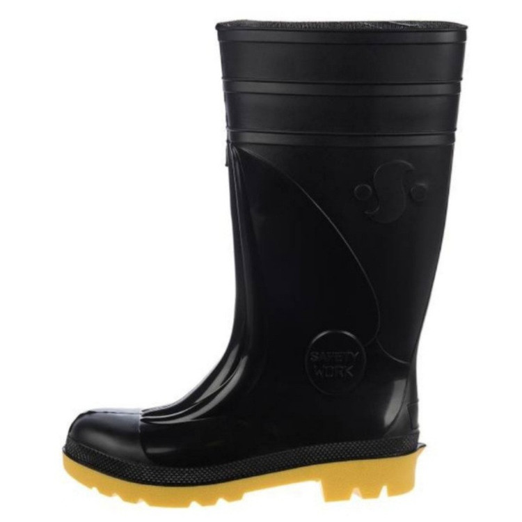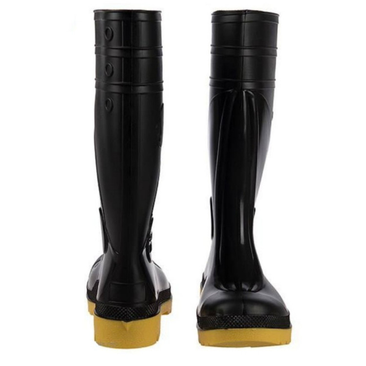 چکمه بلند مشکی با جنس پی وی سی جهت حفاظت از پا در محیط های آبی می باشد که خطری پنجه پا را تهدید نمی کند زیرا این چکمه پنجه فولادی ندارد. چکمه فوق در سایز های ۴۰ تا ۴۵ موجود می باشد. موارد مصرف چکمه در بیمارستان ها، کارخانه، کارواش، قالیشویی، صنایع غذایی، کشاورزی، دامپروری، شهرداری و … می باشد. چکمه ها معمولا از جنس پی وسی بوده با کاربری های متفاوت از قبیل استفاده در آب، ضد اسیدی، آتش نشانی و ضد برق که کاربر باید با توجه به نوع فعالیت مورد نظر چکمه خود را انتخاب نماید. چکمه های معمولی به رنگ سفید و مشکی یا با رنگبندی های شاد برای کودکان هستند. چکه های عایق برق، ضد اسید و آتش نشانی معمولا زرد رنگ می باشند. در هنگام انتخاب چکمه به پنجه و ارتفاع ساق و همچنین نوع مصرف آن توجه نمایید تا از خطرات احتمالی پیشگیری شود.