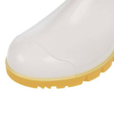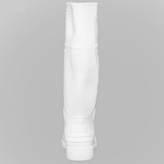 + موارد بیشترچکمه بلند سفید با جنس پی وی سی جهت حفاظت از پا در محیط های آبی می باشد که خطری پنجه پا را تهدید نمی کند زیرا این چکمه پنجه فولادی ندارد. چکمه فوق در سایز های ۴۰ تا ۴۵ موجود می باشد. موارد مصرف چکمه در بیمارستان ها، کارخانه، کارواش، قالیشویی، صنایع غذایی، کشاورزی، دامپروری، شهرداری و … می باشد. چکمه: چکمه ها معمولا از جنس پی وسی بوده با کاربری های متفاوت از قبیل استفاده در آب، ضد اسیدی، آتش نشانی و ضد برق که کاربر باید با توجه به نوع فعالیت مورد نظر چکمه خود را انتخاب نماید. چکمه های معمولی به رنگ سفید و مشکی یا با رنگبندی های شاد برای کودکان هستند. چکه های عایق برق، ضد اسید و آتش نشانی معمولا زرد رنگ می باشند. در هنگام انتخاب چکمه به پنجه و ارتفاع ساق و همچنین نوع مصرف آن توجه نمایید تا از خطرات احتمالی پیشگیری شود.