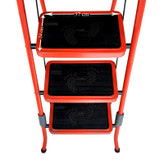 متاسفانه این کالا در حال حاضر موجود نیست. میتوانید از طریق لیست بالای صفحه، از محصولات مشابه این کالا دیدن نمایید.نردبان پنج پله مدل Diamond، یک محصول مقاوم ، سبک و بادوام است که برای انجام کارهای عمومی در منازل وکارگاهها بسیار مناسب است. دقت ساخت و نوع طراحی این محصول به گونهای است که بدون لرزش بوده و حداکثر ایمنی را برای کاربر فراهم می کند. وزن بسیار کم این نردبان موجب شده که جابجایی و حمل و نقل آن بسیار آسان باشد. کفپوش عایق و آجدار روی پلهها از سرخوردن کاربر جلوگیری میکند. همچنین پهن تر بودن سطح پلههای این نردبان با ابعاد 24x37 این نردبان را از سایر نردبانهای مشابه متمایز ساخته و باعث میشود هنگام استفاده احساس خستگی نکنید . همچنین وجود کفپوش لاستیکی برای پایههای نردبان باعث حفاظت از سطح زیرین مثل فرش ، موکت و پارکت میشود.