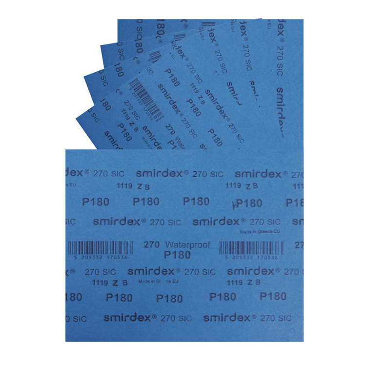 ورق سنباده با زبری P180 برند (اسمیردکس-Smirdex) تولید در کشور یونان میباشد.که سنباده های تولید شده توسط این برند با تکنولوژی روز اروپا تولید شده است.این سنباده به صورت پوست آب و ورقه برش خورده سنباده است که برای مصارف پولیش کاری، سنباده زنی مورد استفاده قرار میگیرد. از سنباده اسمیردکس برای پرداخت و از بین بردن سطوح لکه دار و همچنین خطوط بدنه استفاده می شود. این محصول قابل استفاده برای چوب-فلز-سنگ-سطوح بتونه شده,سطوح رنگ شده,استفاده های عمومی بخصوص برای صافکاری ماشین است.