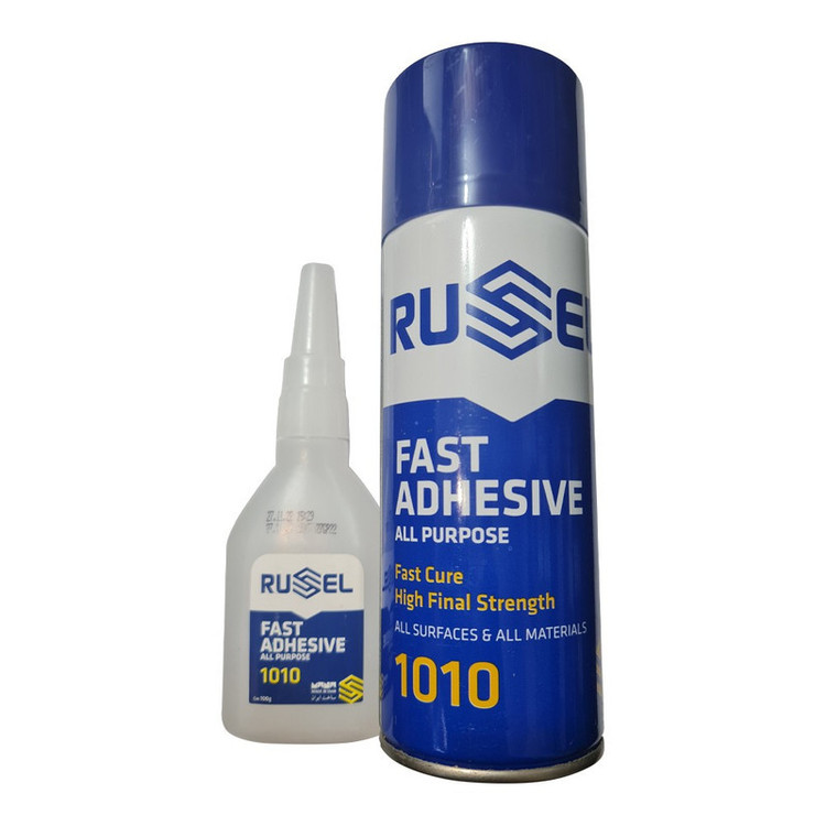 چسب 123، همان چسب فوری یا چسب همه کاره است که به انگلیسی، چسب دیوانه (Crazy glue) یا چسب فوق العاده (Super glue) و با نام صنعتی سیانواکریلات شناخته میشود. یکی دیگر از نام های چسب 123، چسب سیانواکریلات است و خاصیت سمی دارد. در هر حال، هم اسامی ایرانی و هم اسامی خارجی این چسب اشاره به قدرت چسبندگی قوی و سریع آن دارند. چسب 123 از دو بخش تشکیل شده است که عبارتند از: چسب و اسپری شتاب دهنده. این چسب معمولا یک اسپری شتاب دهنده همراه خود دارد که قبل از مایع استفاده میشود و سرعت چسبندگی آن را بالا میبرد و سبب می شود که چسب سریعتر به سطح مورد نظر بچسبد. ترکیب مواد داخل اسپری با چسب، باعث فعال شدن چسب میشود و قدرت چسبندگی بسیار بالایی را ایجاد میکند. علت اصلی محبوبیت چسب یک دو سه، سرعت بالای خشک شدن و قدرت چسبندگی عالی این محصول است. کیت چسب 1010 راسل شامل چسب سیانو اکریلات با ویسکوز بالا به همراه اسپری فعال کننده می باشد.(400 میل و تعداد 24 عدد در هر کارتن) از ویژگیهای چسب 123 میتوان به قدرت چسبندگی بالا، مقاومت در برابر رطوبت، مقاومت حرارتی، سرعت خشک شدن بالا، ماندگاری طولانی مدت و قابل استفاده بودن برای انواع سطوح اشاره کنیم.