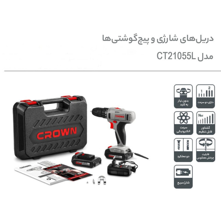 دریل پیچ گوشتی شارژی کرون مدل CT21055L