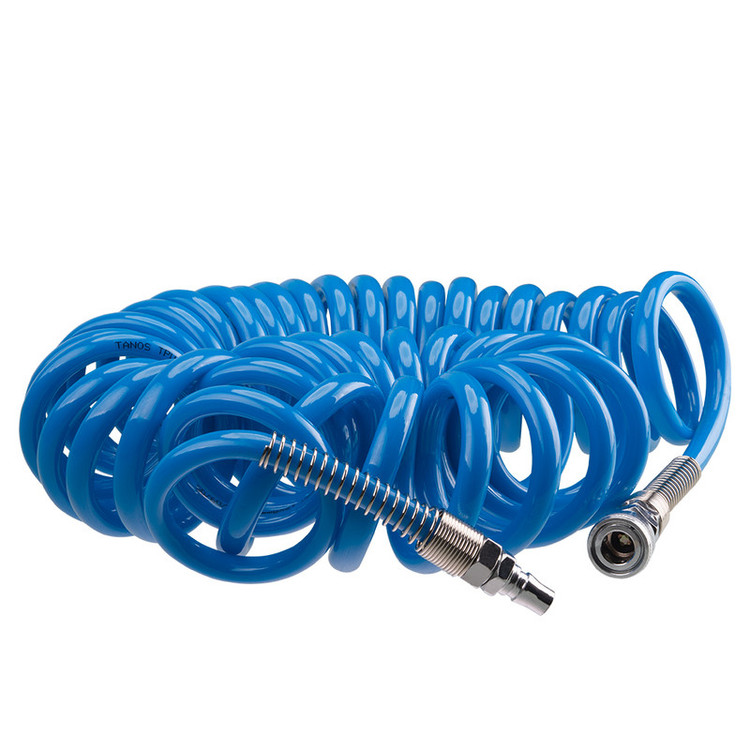 شلنگ های (فشار قوی) که اکثرا با نام شیلنگ های هیدرولیک شناخته و استفاده می شوند، از جمله یکی از پرکاربرد ترین تجهیزات در صنایع محسوب می شود که در جهت انتقال مایعات و گاز های پرفشار در انواع صنایع مورد استفاده قرار می گیرد.این نوع شیلنگ ساختاری از پلاستیک مصنوعی داشته که همین موجب خاصیت ارتجاعی بودن این محصول می شود.همچنین برای افزایش مقاومت در فشار های بالا از چندین لایه بافته شده از سیم های فلزی بر روی شیلنگ استفاده می کنند تا با کمترین افت فشار قادر به انتقال نیروی سیالات باشد. شلنگ فنری (فشار قوی) 10 متری تانوس مدل CH_10 از مواد پلی اورتان بسیار سبک و با دوام بالا ساخته شده و دارای کوپلینگ از جنس فولاد با مقاومت بالا در برابر ساییدگی و فشار بالا می باشد. انعطاف پذیری فوق العاده این شلنگ موجب میشود که در دمای زیر صفر درجه نیز تغییر فرم ندهد. همچنین حداکثر بار قابل تحمل آن 26 بار (150 PSI) بود و قابلیت کار تا دمای 60 درجه را دارد، ضخامت و قطر آن 12x8 میلی متر است و طول واقعی آن 10 متر می باشد.این شلنگ بخاطر قطر بزرگ و استانداردی که دارد برای نازل های با توان فشار باد بالا از جمله بکس بادی بسیار مناسب است.