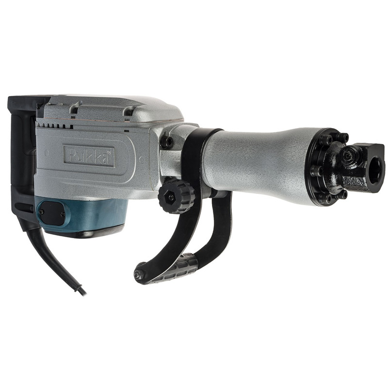 چنانچه بهدنبال چکش تخریب هستید، میتوانید محصول شرکت (Pukka) «پوکا» را انتخاب کنید. این چکش تخریب تحت عنوان مدل (H1601) به بازار عرضه شده است. منبع تغذیه این ابزار برق بوده و ولتاژ آن بین 220 تا 240 ولت است. وزن این ابزار 15 کیلوگرم و توان آن 1500 وات است. قدرت موتور بالا و وزن سنگین این محصول باعث شده است تا H1601 در دسته ابزار آلات صنعتی قرار بگیرد و مصرف آن برای انواع پروژههای صنعتی مناسب باشد. نرخ ضربه H1601 برابر با 1450 ضربه در دقیقه بوده که بالاتر از مقدار دیگر محصولات موجود در بازار است. مکانیزم رفت و بازگشت و وجود دستهای نرم و راحت از ویژگیهای دیگر H1601 هستند. قدرت بسیار زیاد موتور این حصول شرکت پوکا باعث شده است تا چکش دارای قدرت بسیار زیادی جهت تخریب داشته باشد. لازم به ذکر است که سه نظام این چکش تخریب بهصورت 6 گوش است.